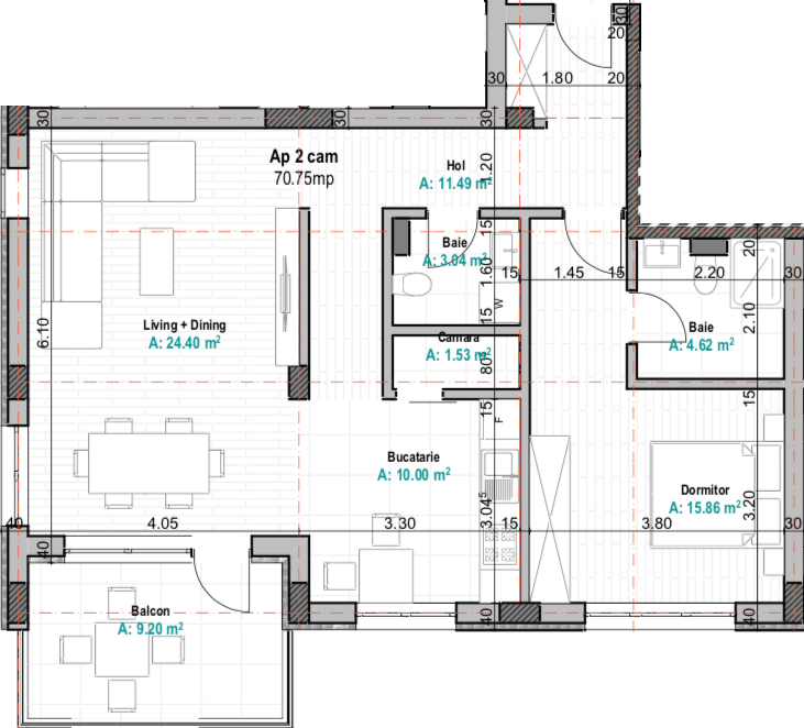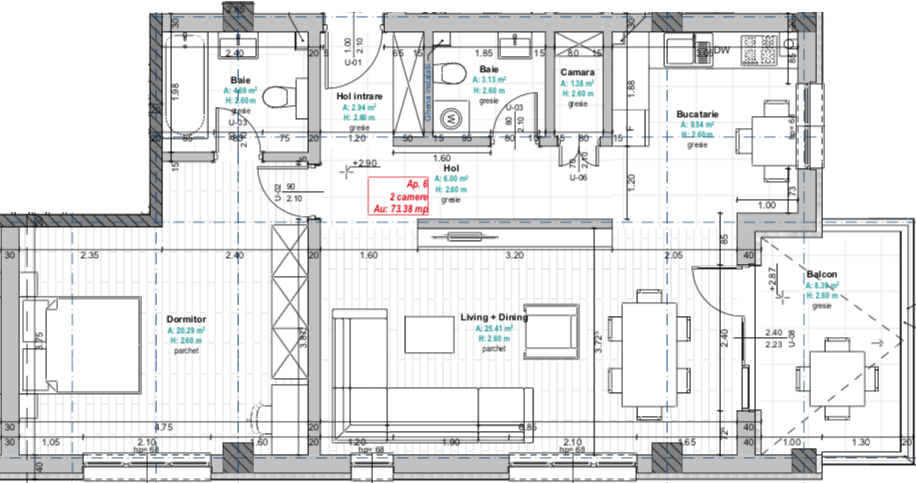 Datorită configurației inteligente, fiecare apartament cu două camere beneficiază de două băi finisate pe gustul tău.