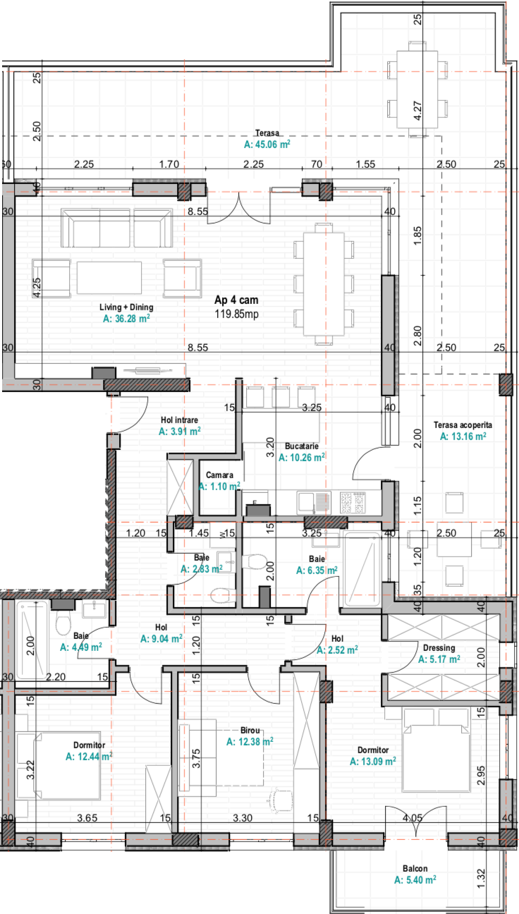 Suprafață totală: 119.85 m²